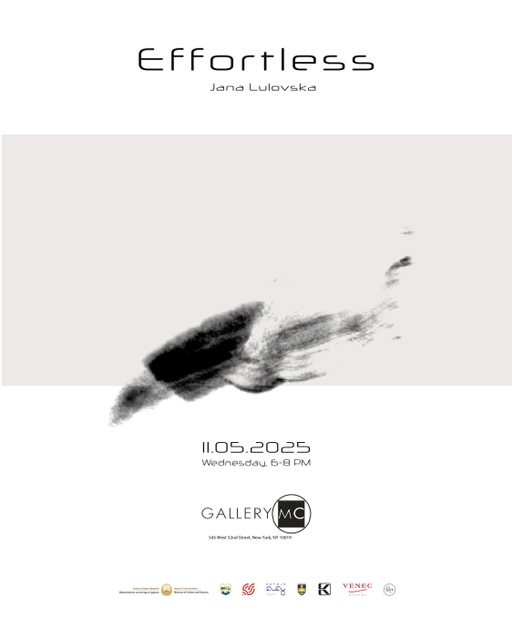 The solo exhibition Effortless by Macedonian interdisciplinary artist Jana Lulovska will open on November 5, 2025, 6 to 9 PM at Gallery MC in New York. The exhibition presents a selection of digital paintings that explore the concepts of fluidity, transformation, and the natural flow of life.