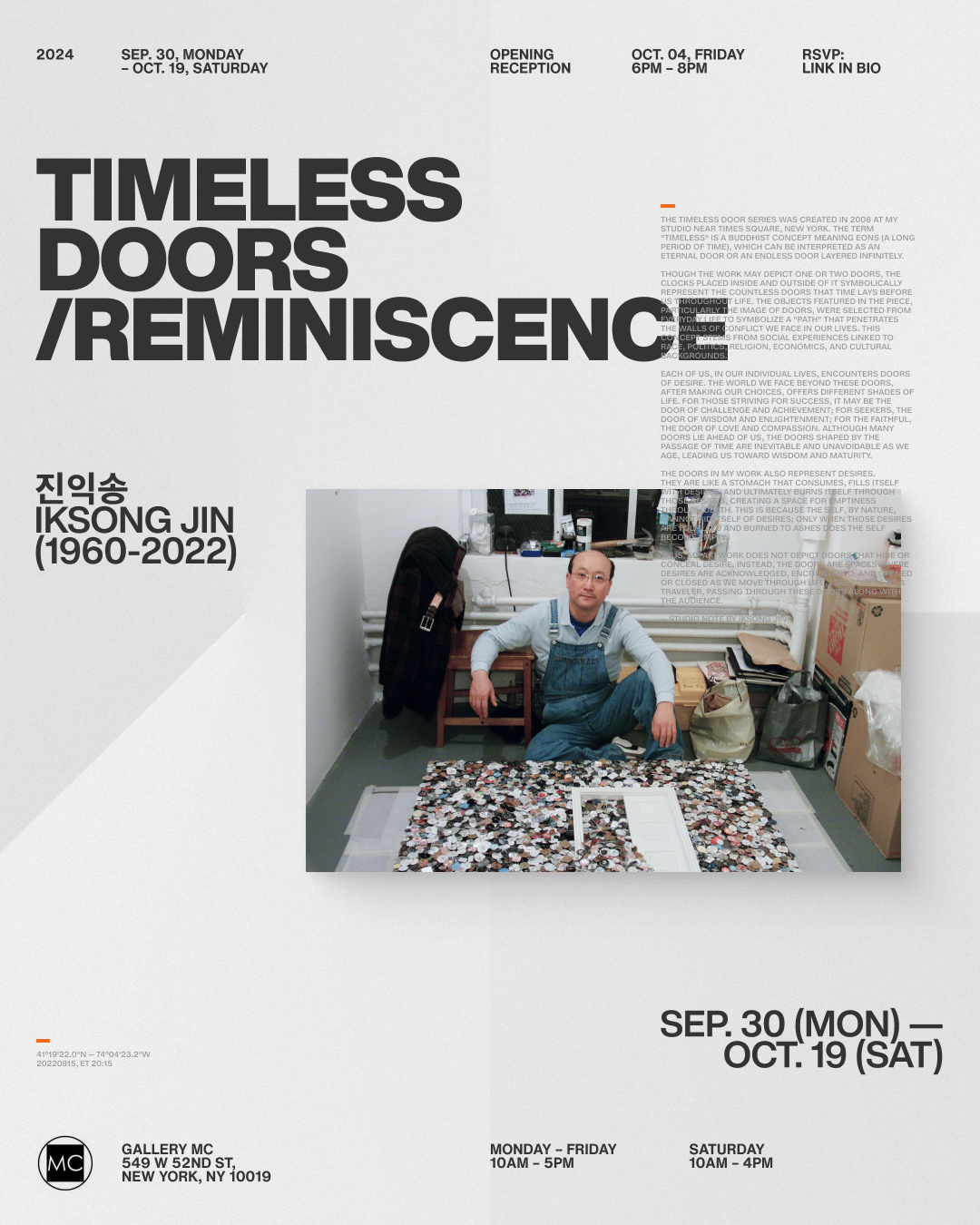 I invite you to the “Timeless Doors/Reminiscence” exhibition, celebrating the life and legacy of an extraordinary artist, educator, and friend. The exhibition showcases the Timeless Doors series in the city that Iksong loved so much: New York.